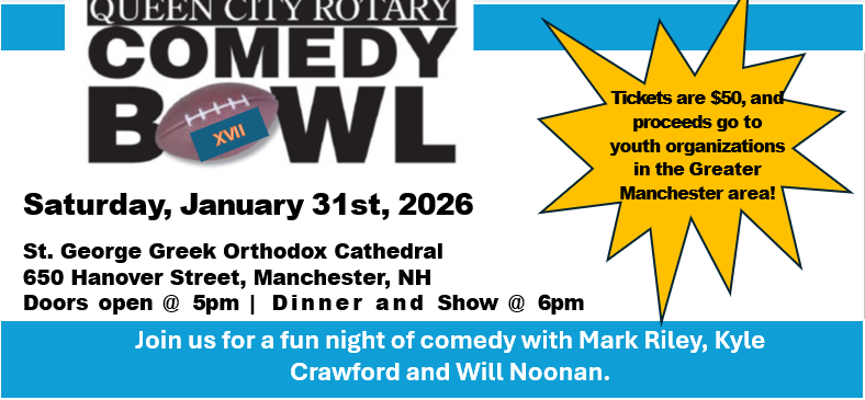 Proceeds from this event support grants from Queen City Rotary which are reinvested in nonprofit organizations serving youth in the Greater Manchester community.